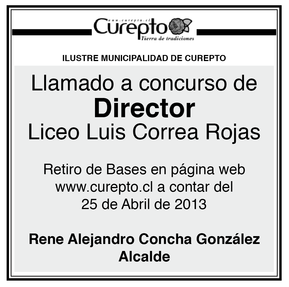 Liceo Luis Correa Rojas: Llama a Concurso Director de Escuela Comuna de Curepto