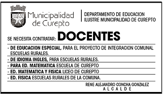 Ilustre Municipalidad de Curepto: Departamento de Educación Necesita Contratar Docentes