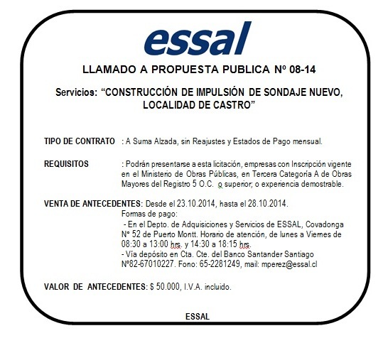 Essal: Propuesta Pública N° 08-14 “Construcción Sondaje Essal Castro”