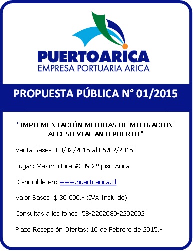Empresa Portuaria Arica: Propuesta Pública N°01/2015 “Implementación Medidas de Mitigación Acceso Vial Antepuerto”