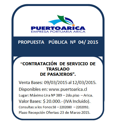 Empresa Portuaria Arica: Propuesta Pública N° 4/2015 Contratación de Servicio de Traslado de Pasajeros