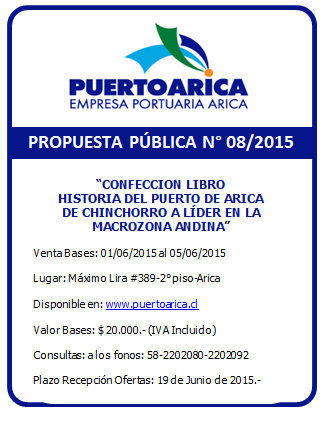 Empresa Portuaria Arica: Propuesta Pública N°08/2015 “Confección Libro Historia del Puerto de Arica de Chinchorro a Líder en la Macrozona Andina”