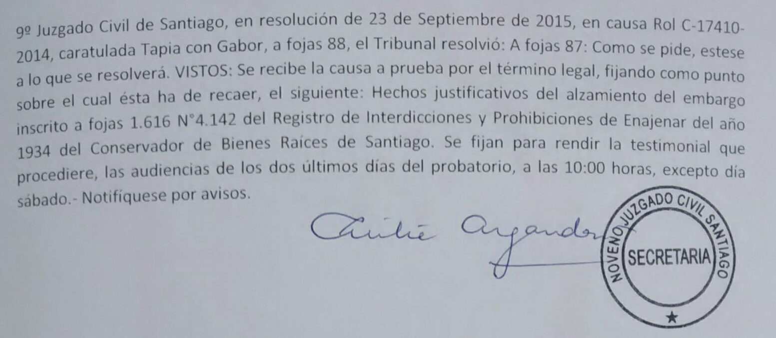 Extracto: Resolución en causa ROL C-17410-2014. “TAPIA CON GABOR”. Ante el 9° Juzgado Civil de Santiago