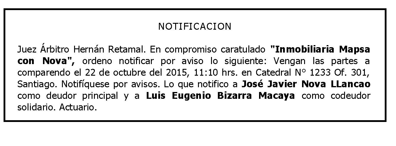 Notificación por Aviso a José Javier Nova Llancao, Compromiso Caratulado "Inmobiliaria Mapsa con Nova "
