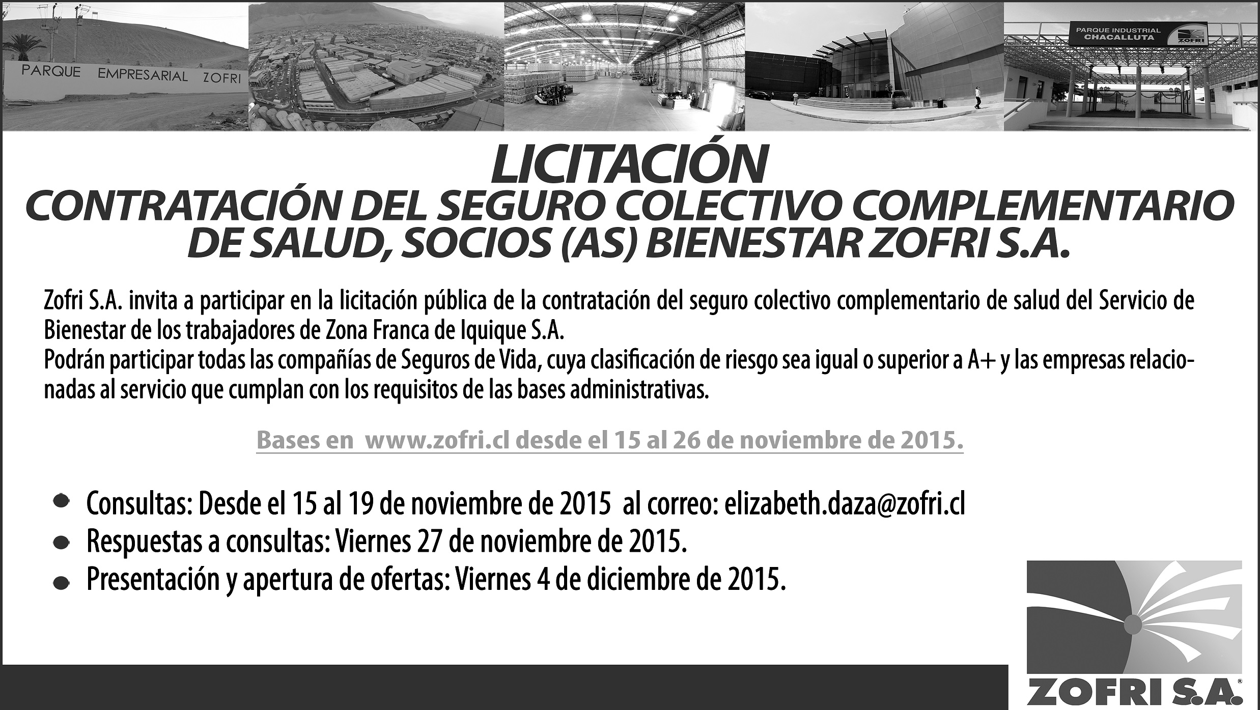 ZOFRI: Licitación Contratación del Seguro Colectivo Complementarios de Salud, Socios (as) Bienestar Zofri S.A.