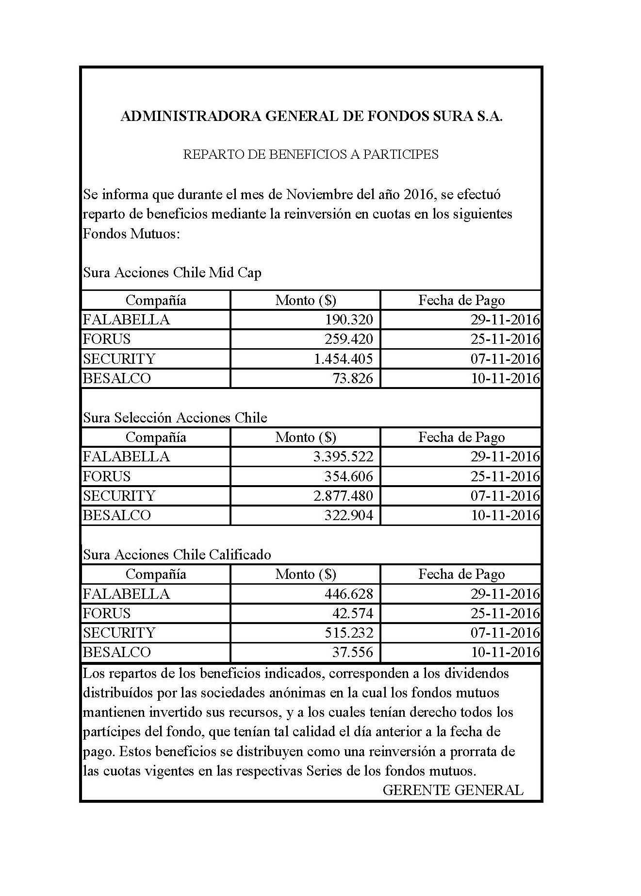 Administradora General de Fondos Sura S.A.: Informa Reparto de Dividendos