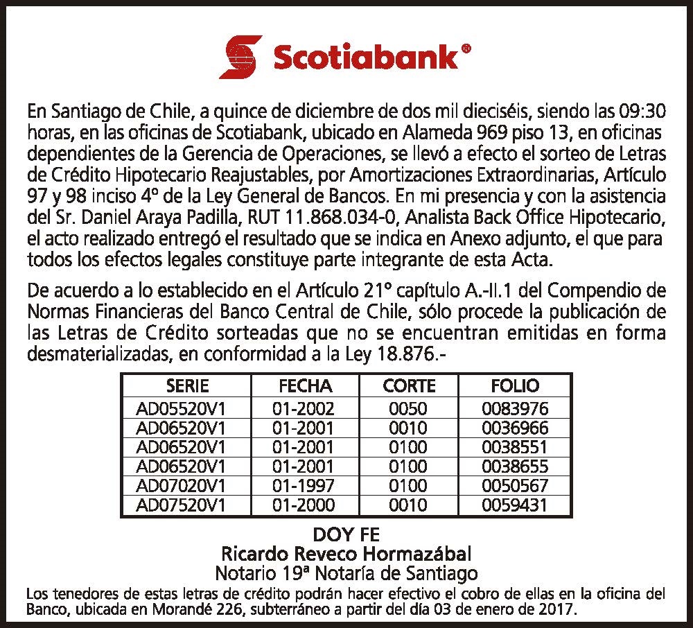 SCOTIABANK: Sorteo de Letras de Crédito Hipotecario Diciembre de 2016