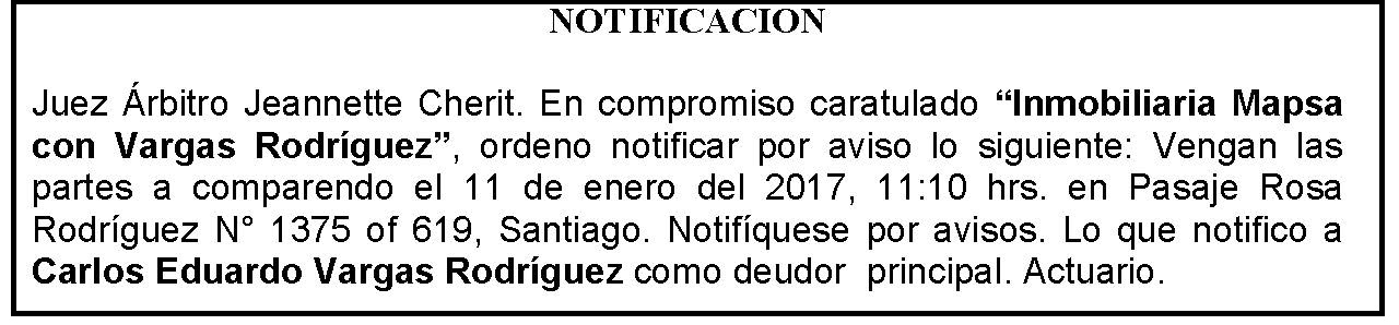 Notificación por Aviso a Carlos Eduardo Vargas Rodríguez, Compromiso Caratulado "Inmobiliaria Mapsa con Vargas Rodríguez" Comparendo