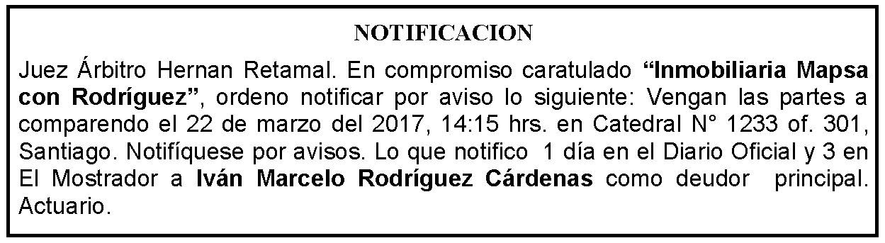 Notificación por Aviso a Iván Marcelo Rodríguez Cárdenas, Compromiso Caratulado "Inmobiliaria Mapsa con Rodríguez"