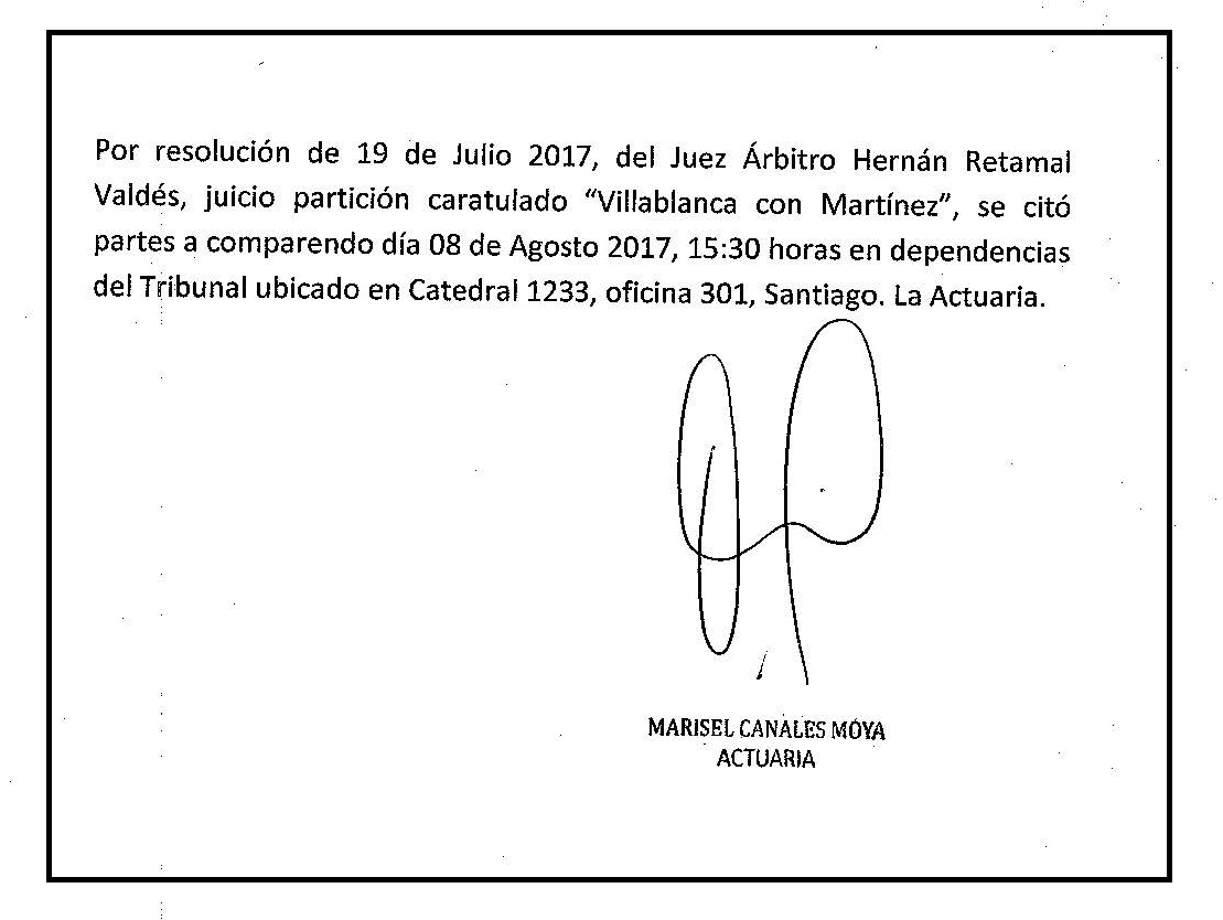 Resolución: Citación a las partes en juicio caratulado: “Villablanca con Martínez”
