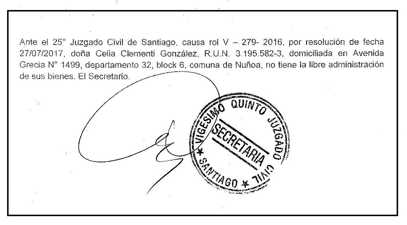 RESOLUCION Ante el 25° Juzgado Civil de Santiago, causa rol V-279-2016, se informa