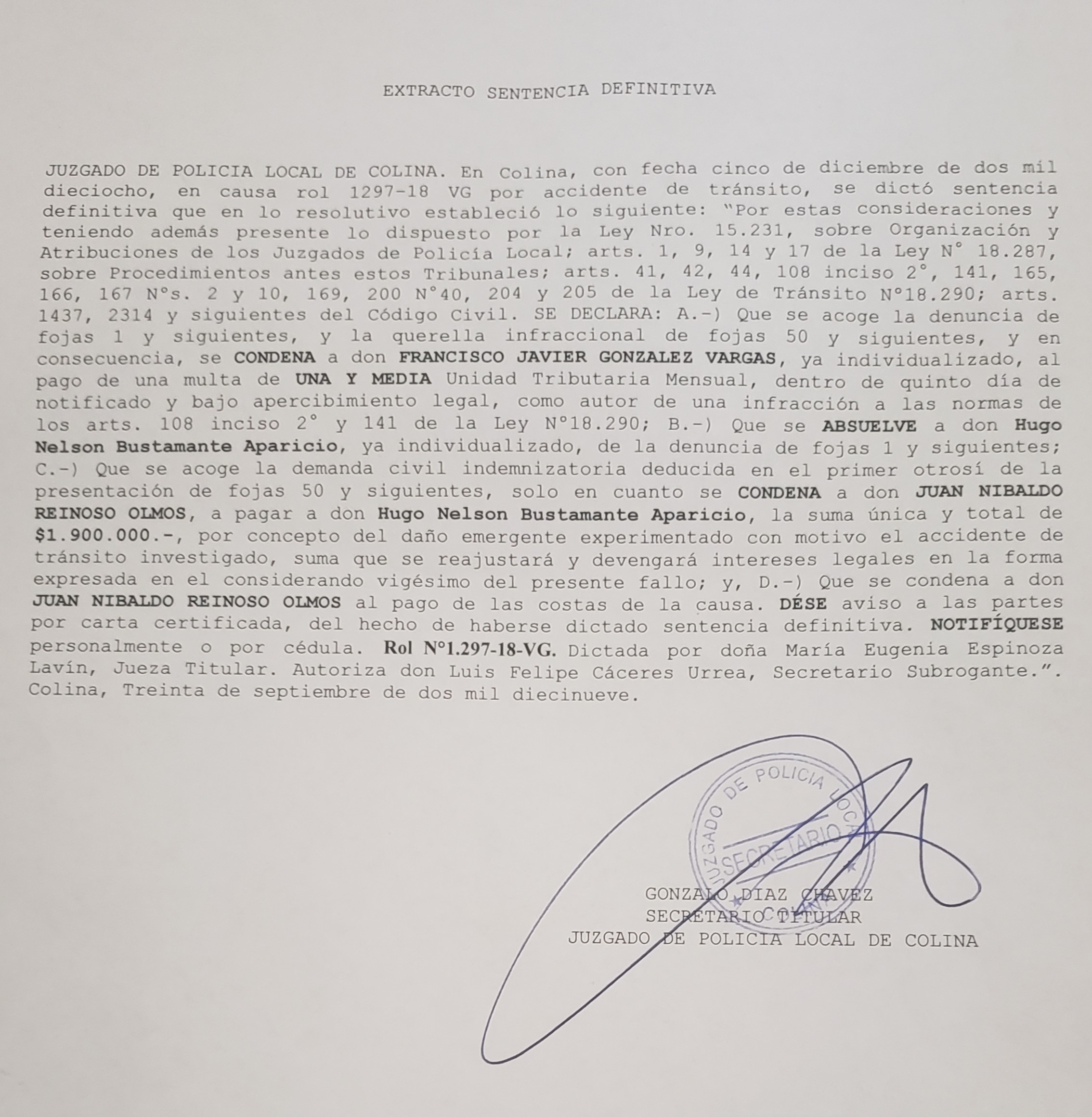EXTRACTO SENTENCIA DEFINITIVA DICTADA POR EL JUZGADO DE POLICIA LOCAL DE COLINA