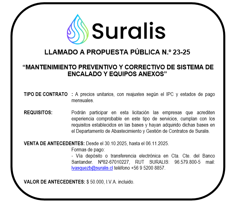 SURALIS:" MANTENIMIENTO PREVENTIVO Y CORRECTIVO DE SISTEMA DE ENCALADO Y EQUIPOS ANEXOS”