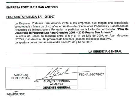 Empresa Portuaria San Antonio: Propuesta Pública SAI - 05/2007