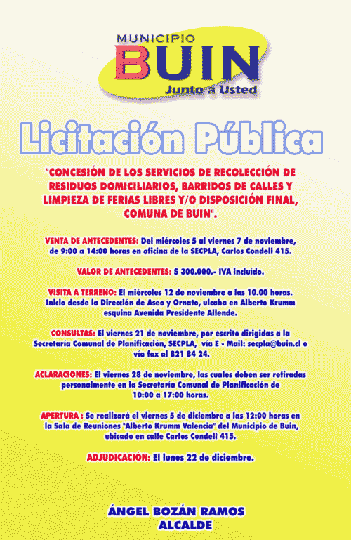 Municipalidad de Buin: Licitación Pública Concesión Servicios de Aseo