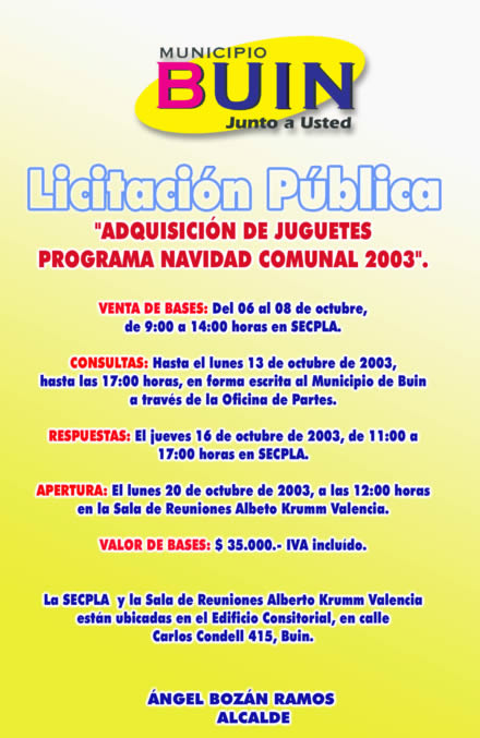 Municipalidad de Buin: Licitación Pública adq. de Juguetes